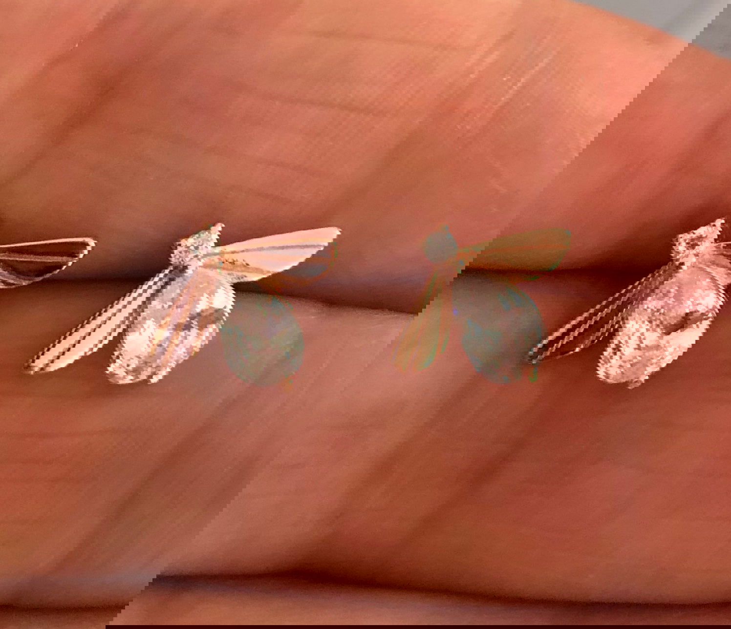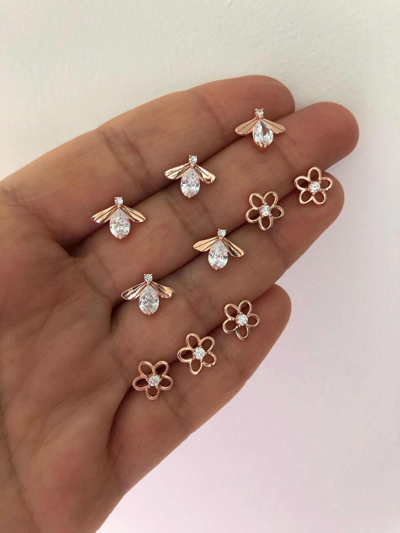 Rose Gold Plated Busy Bee Stud Earrings One bee and one flower