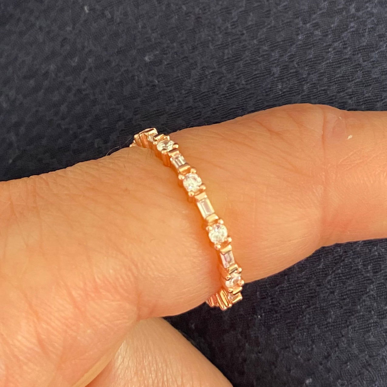 Thin pave-set ring with Small Oval and Square clear zircon stones