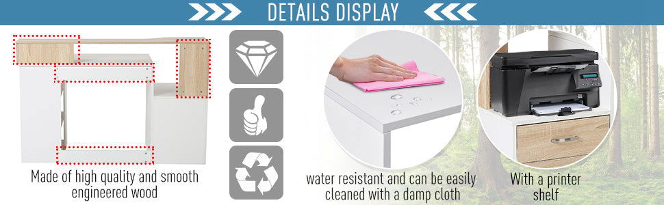 Modern Computer Workstation Desk with Drawers and Storage Shelves, Printer Stand for Home Office, Oak and White