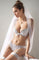 A gorgeous suspender thong made from soft shiny and stretchy cotton. The front has exquisite scallop lacework embroidered onto mesh making Bliss absolutely divine. The back is completely plain. The waistband is elasticated providing extra stretch to fit the waist. Bliss is finished off with a pretty white ribbon bow on the front and a small diamante. Perfect design for bridal wear! Comes packaged in a Gracya box with lovely tissue paper. The suspender straps are detachable. This product is designed to match the B-162 bra.