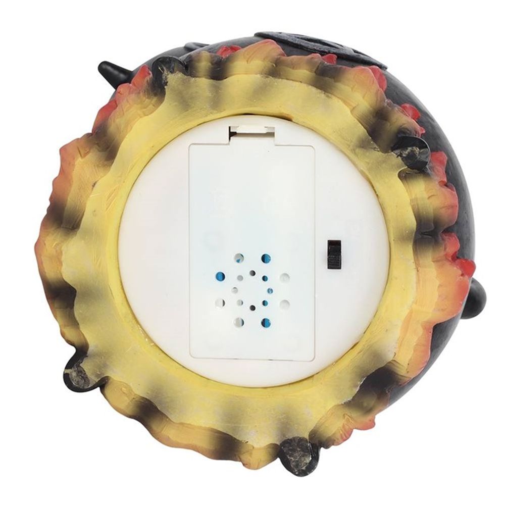 Place a backflow incense cone on top of this resin cauldron burner and watch the smoke gently pour between cauldrons. Accented by flames and a distressed silver-effect pentagram design and finished with a light to create an outstanding smoke effect. Powered by 2 AA batteries and an on/off switch. Product Dimensions: H15cm x W13cm x D11cm Packaged Dimensions: H19cm x W16.5cm x D14.5cm
