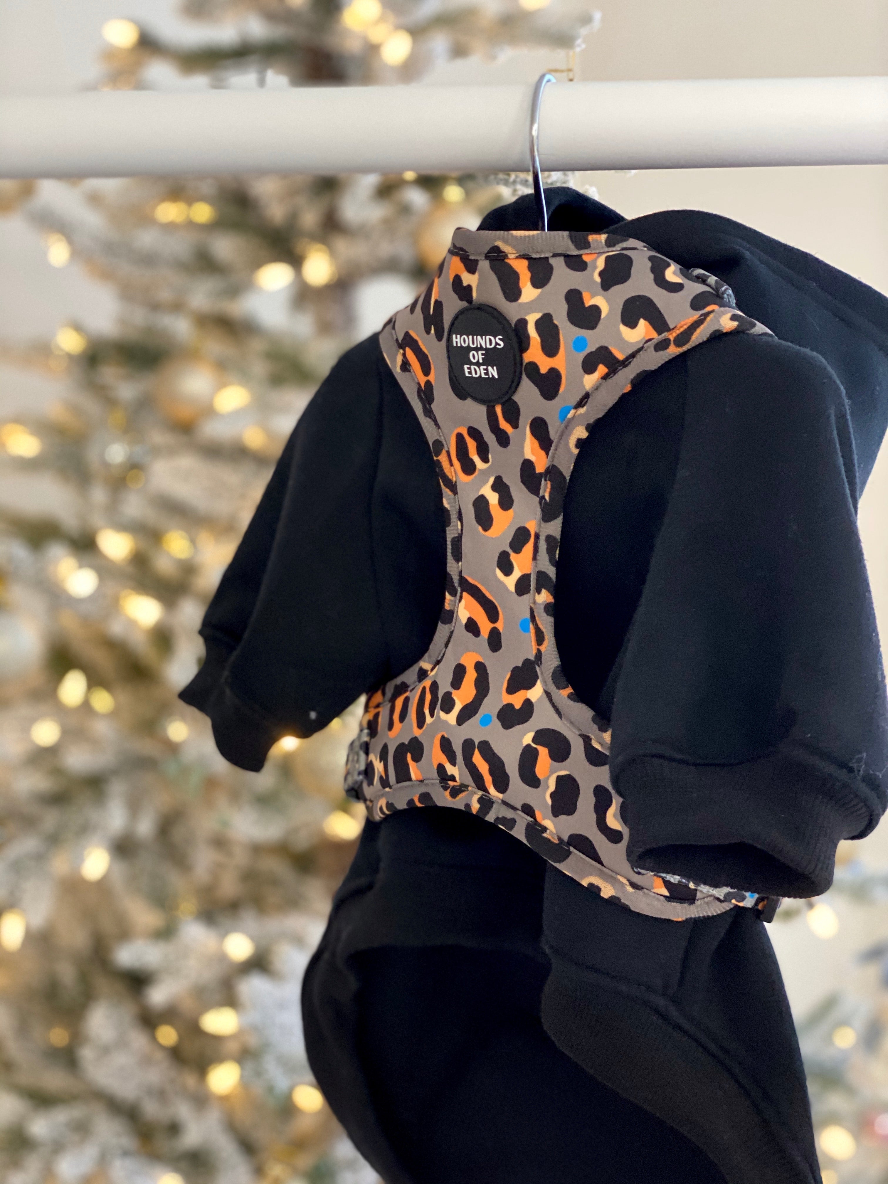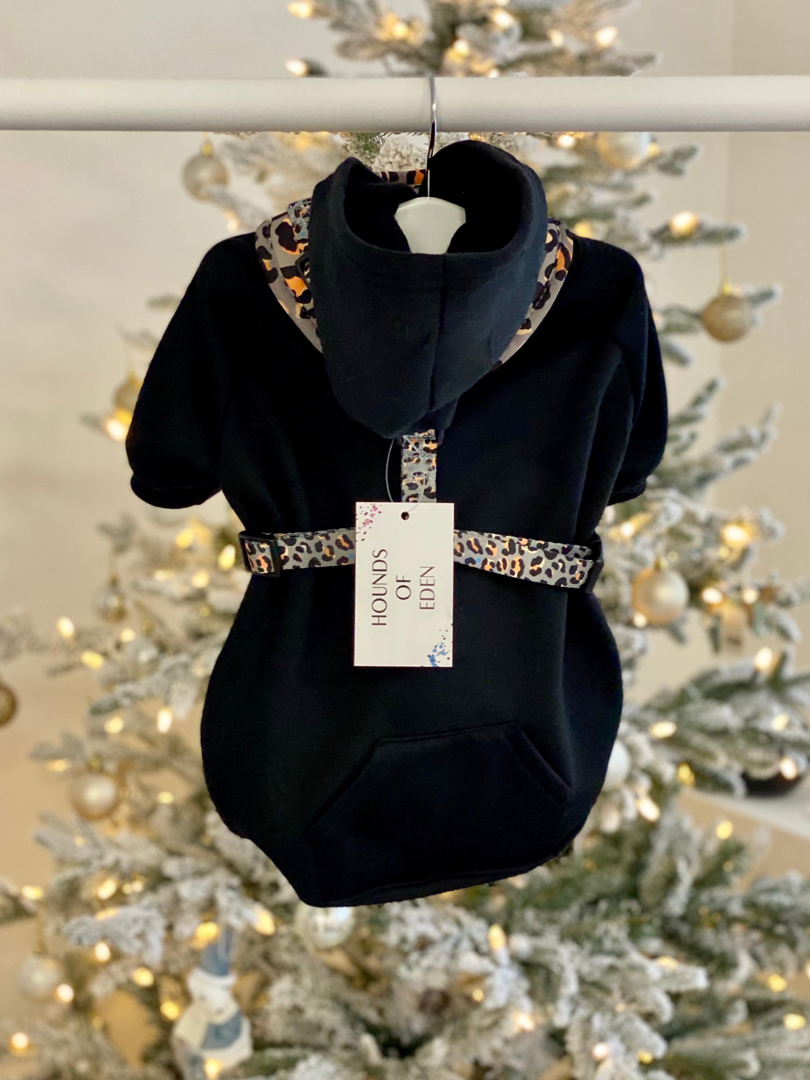 Helping to keep your pup warm + cosy this Winter. Our Black hoodie is super soft & fleece lined