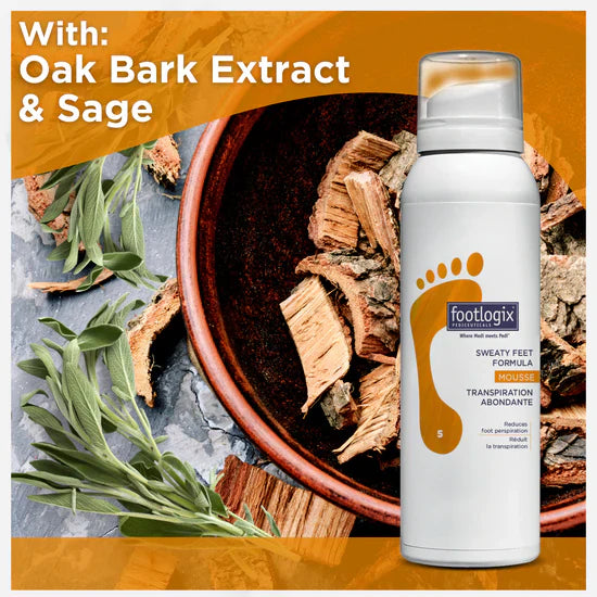 Footlogix® Sweaty Feet Formula is specially designed to tackle excessive perspiration with advanced Dermal Infusion Technology®. This innovative formula combines the astringent properties of Oak Bark and the natural antimicrobial benefits of Sage to help manage sweaty feet effectively. Ideal for athletes, individuals with excessively sweaty feet, or those wearing non-breathable footwear, this formula helps reduce perspiration while supporting the skin's texture and health.