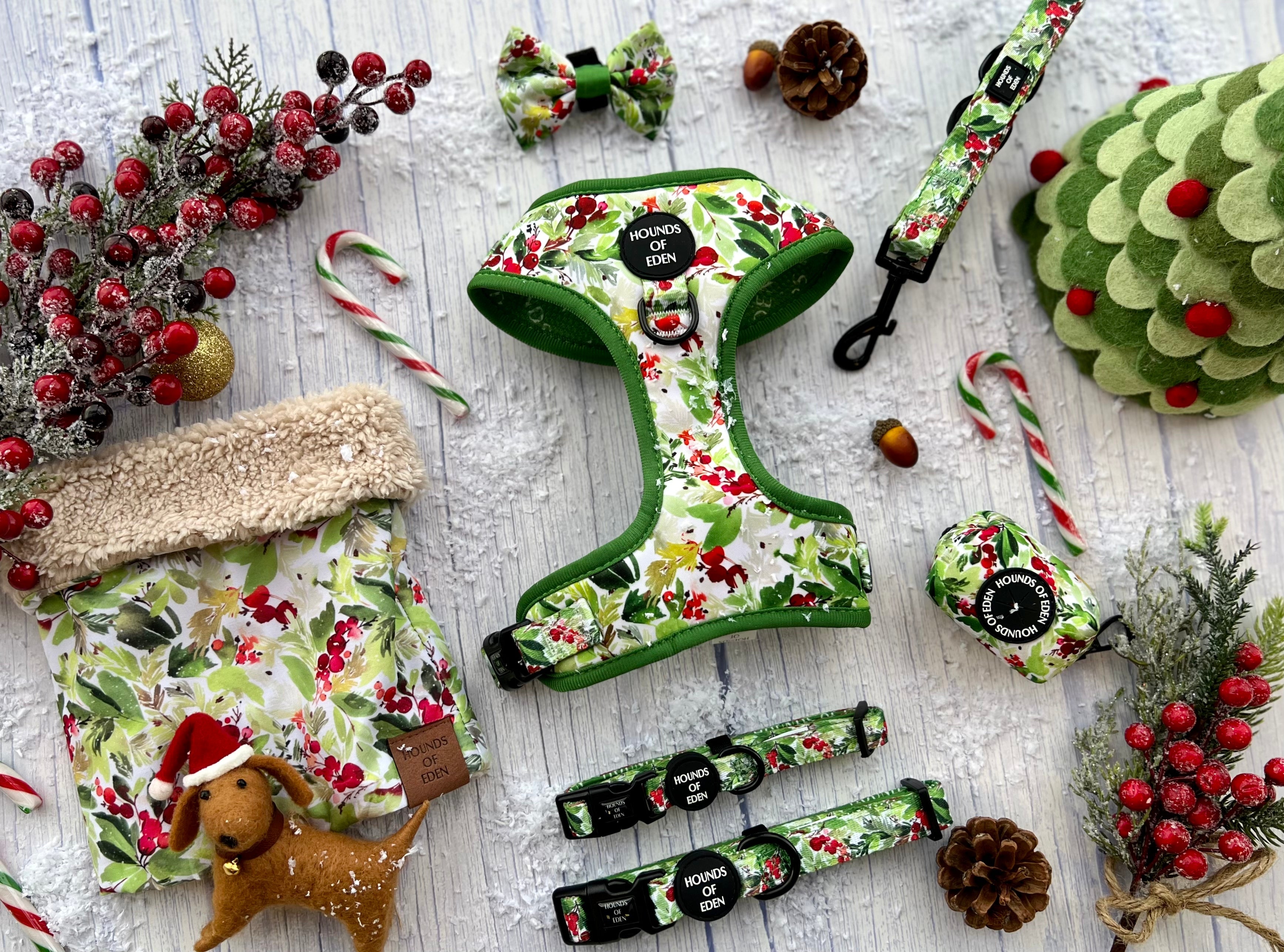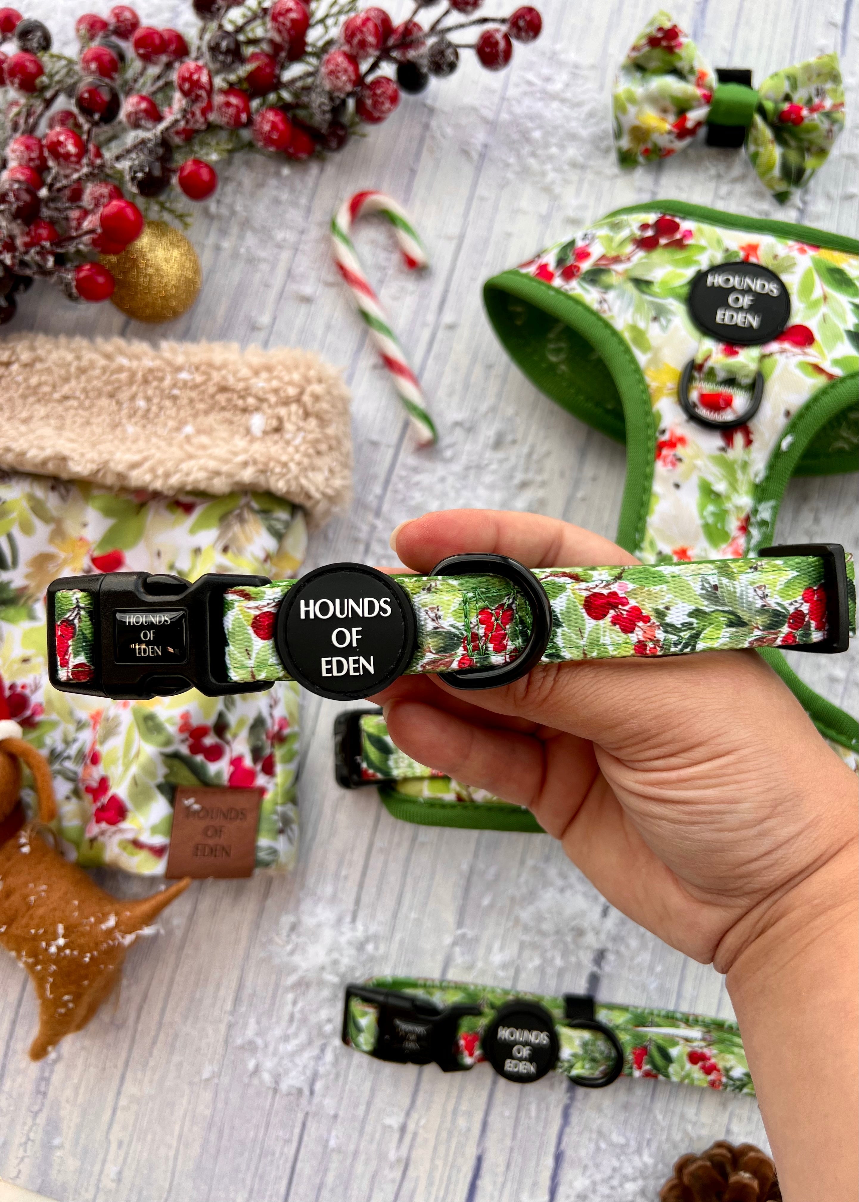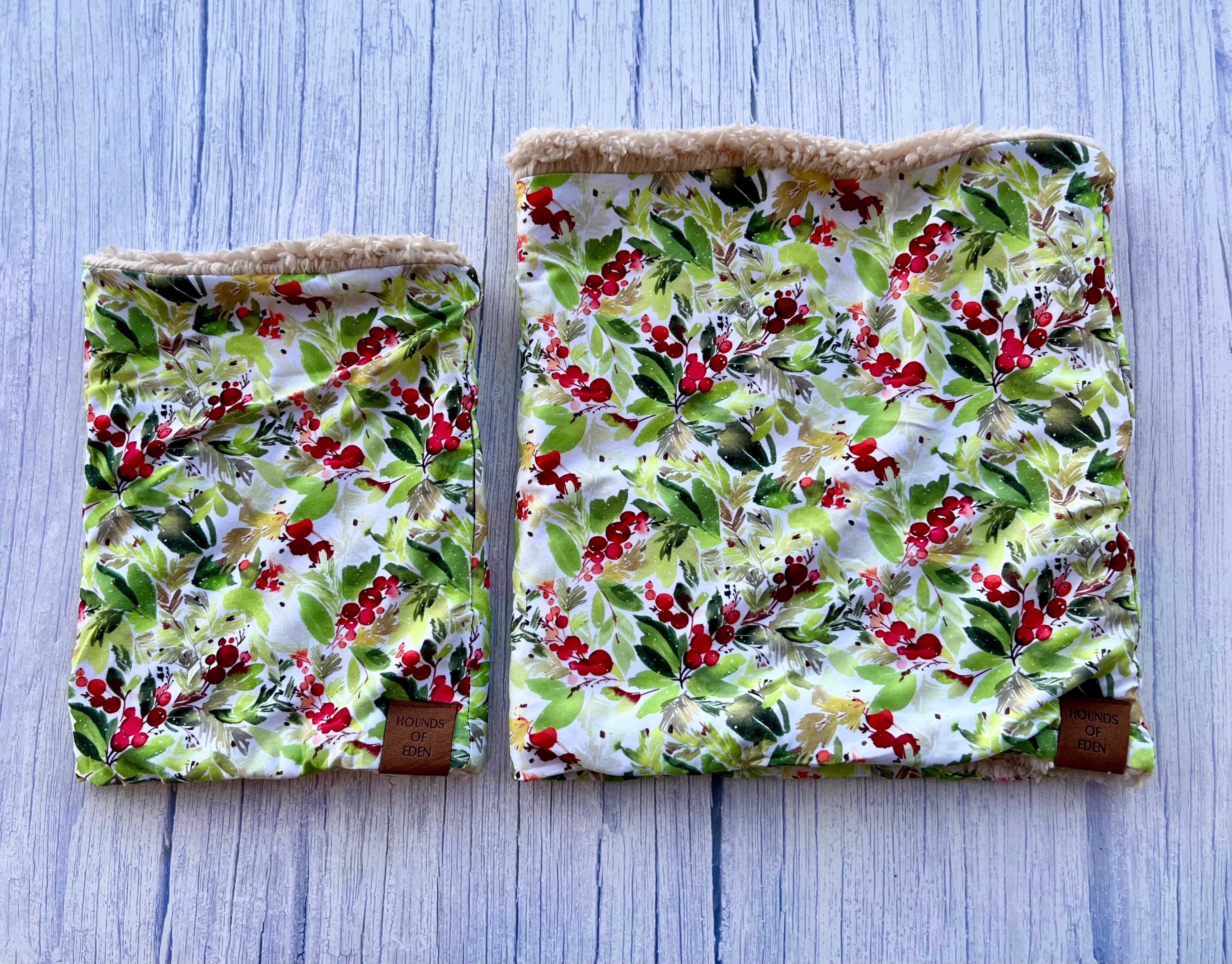 Winter Spruce & Berries Faux Sherpa Fleece Dog Snood. The pawfect Snood for Winter!