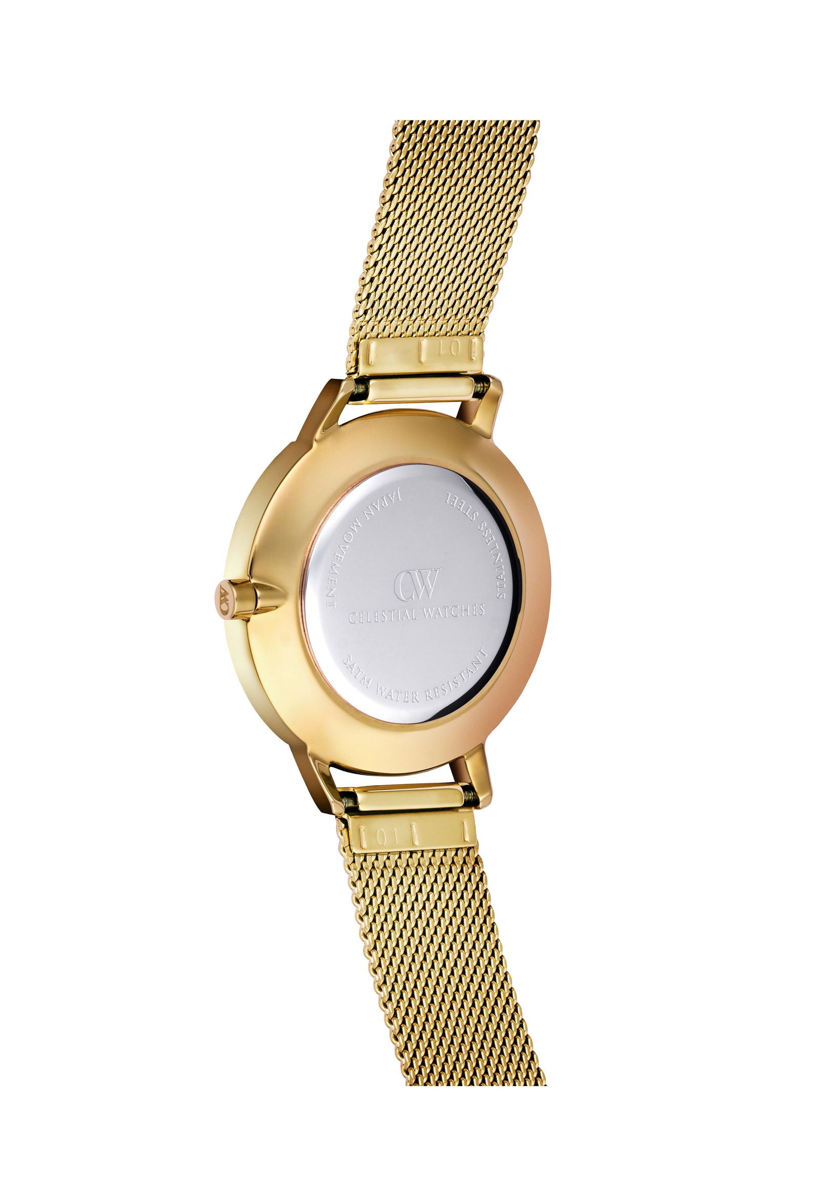 32mm case, 3ATM water resistance, Hardened mineral crystal, Japan Miyota quartz movement