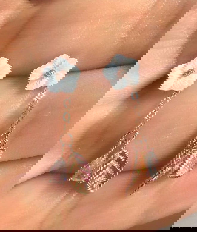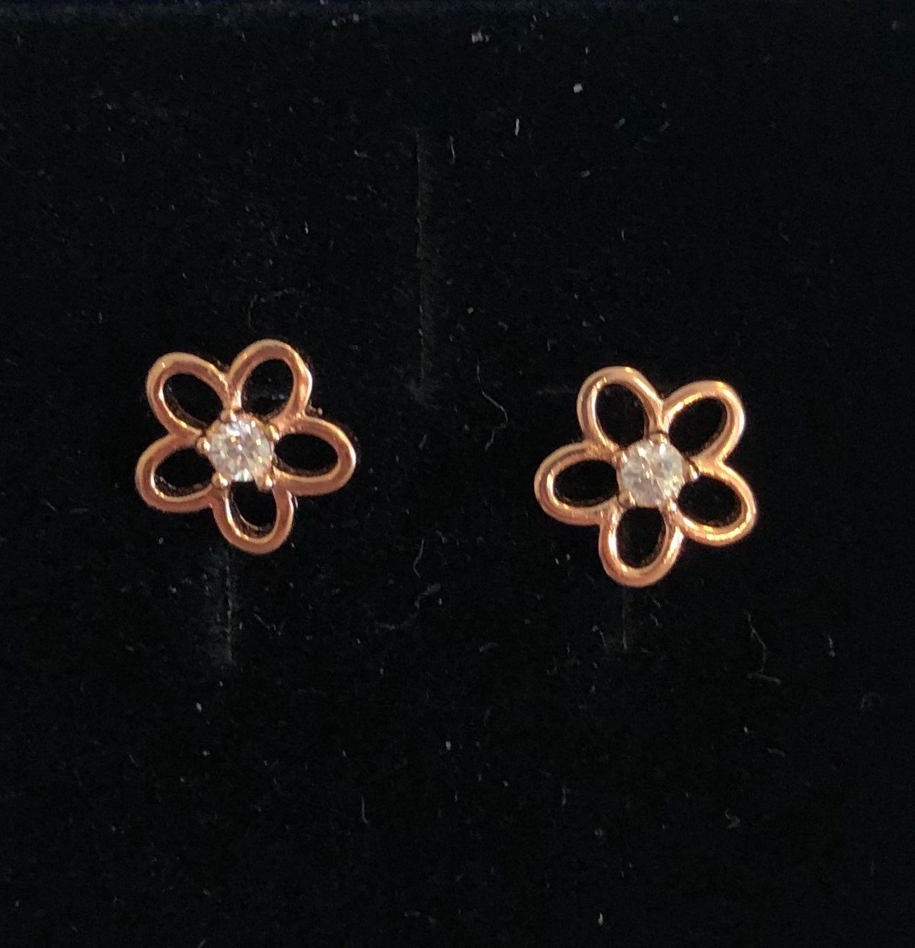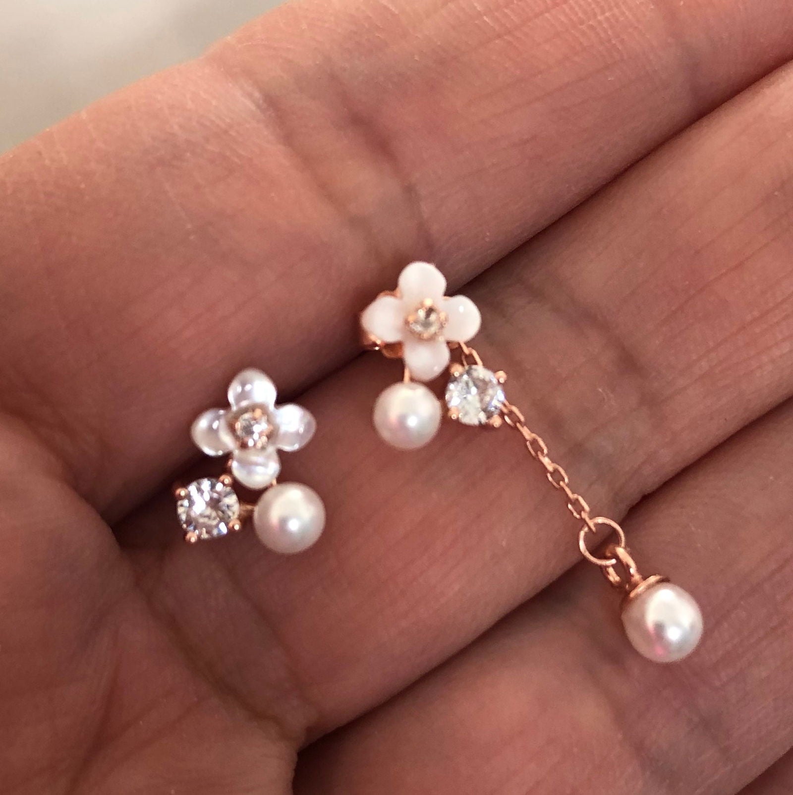Rose gold plated silver studs with mother of pearl flowers.