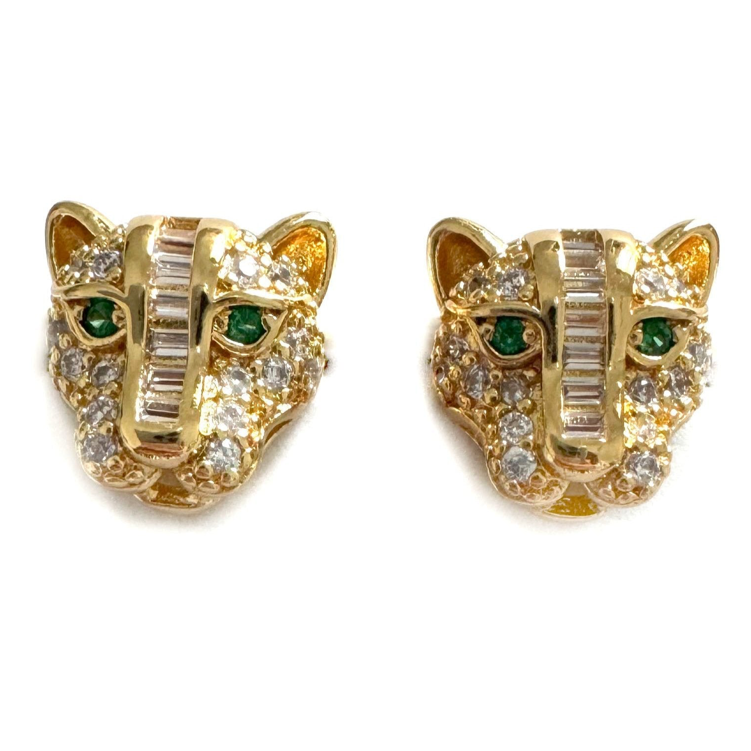 Zuri Luxe 18k Gold Plated Small Jewelled Panther Stud Earrings