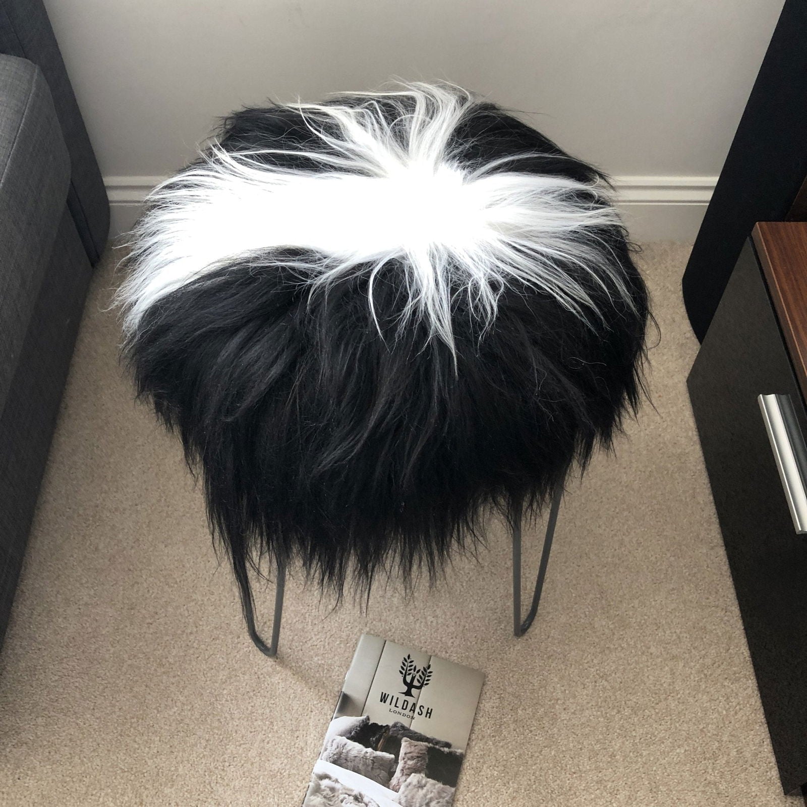 Icelandic Sheepskin Roundie Seat Cover Natural Black and White 35cm