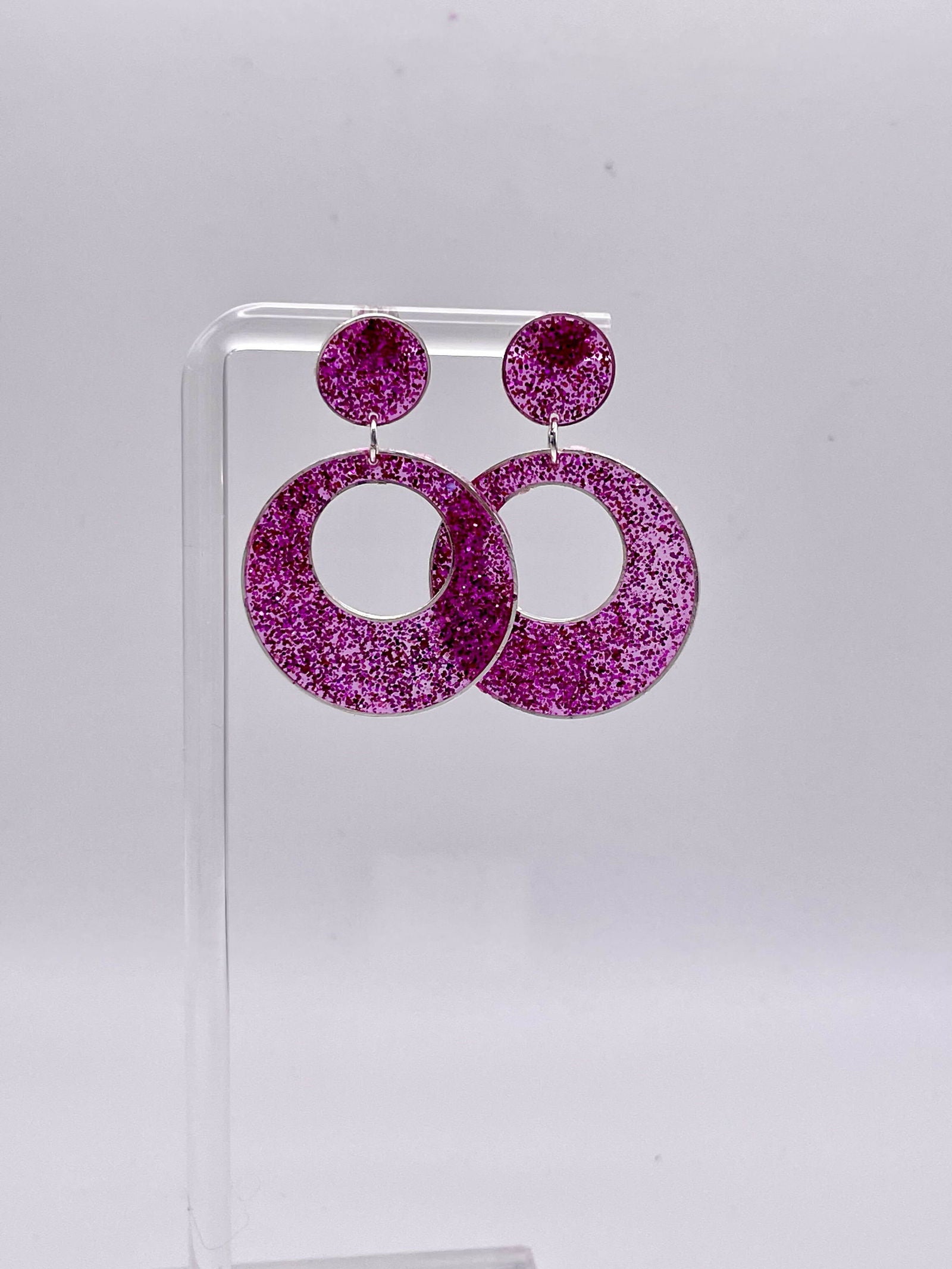 Bright and Sparkly Double Circle Resin Earrings with Sterling Silver Stud