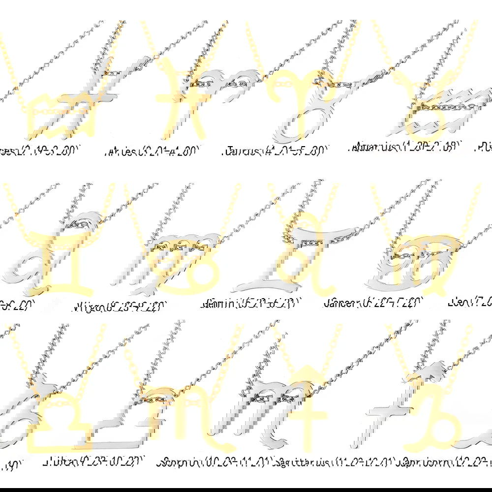 - Astrological Symbols: Each necklace showcases the intricately designed symbol of your zodiac sign, capturing the essence of your celestial personality with precision and grace.