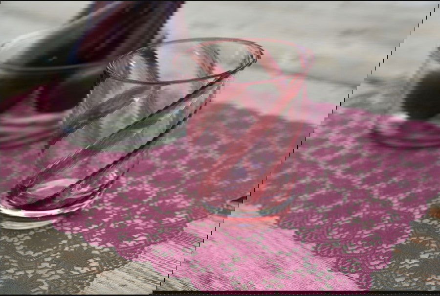 Decorative tumbler with a spiral pattern available in chocolate brown, cream, and Fuschia.