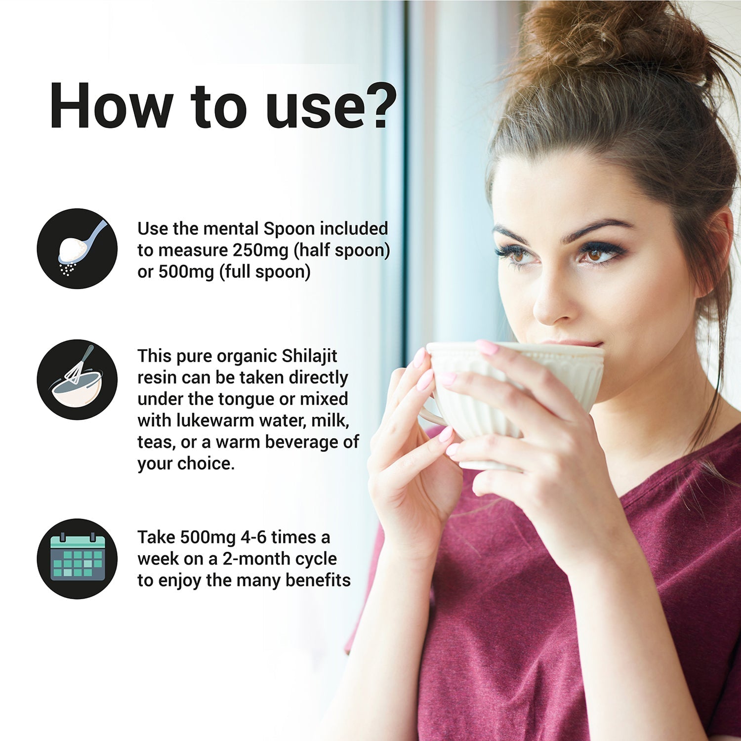 Dissolve it in lukewarm water, milk, tea or any other beverages, stir and consume. Can also be taken directly under the tongue for superior sublingual absorption.
