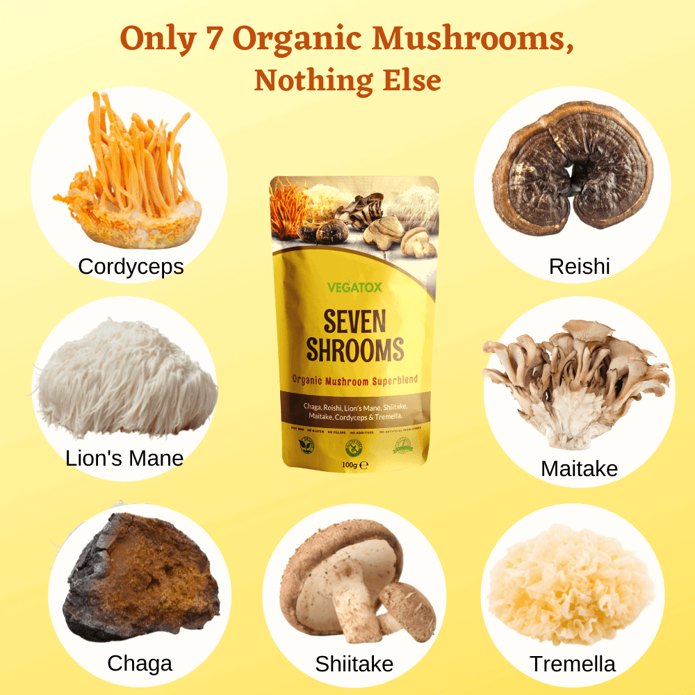✔ Contains shrooms known as adaptogens which help the body to strengthen body's resilience to stress