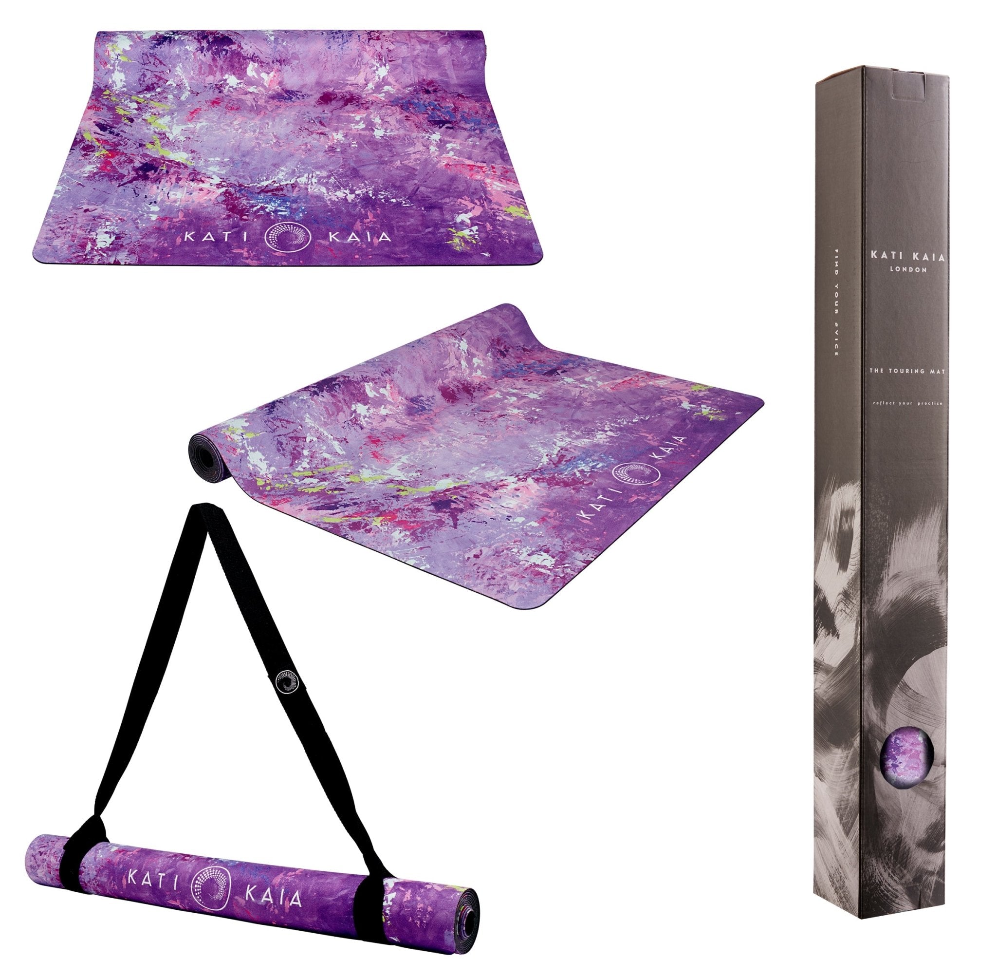 Artistry Travel Yoga Mat of your choice, made of natural rubber, paired with Cotton Yoga Strap with BKS Iyengar buckle closure and Eco Cork Yoga Block to complete the set - easy to wipe clean, hygienic and versatile.