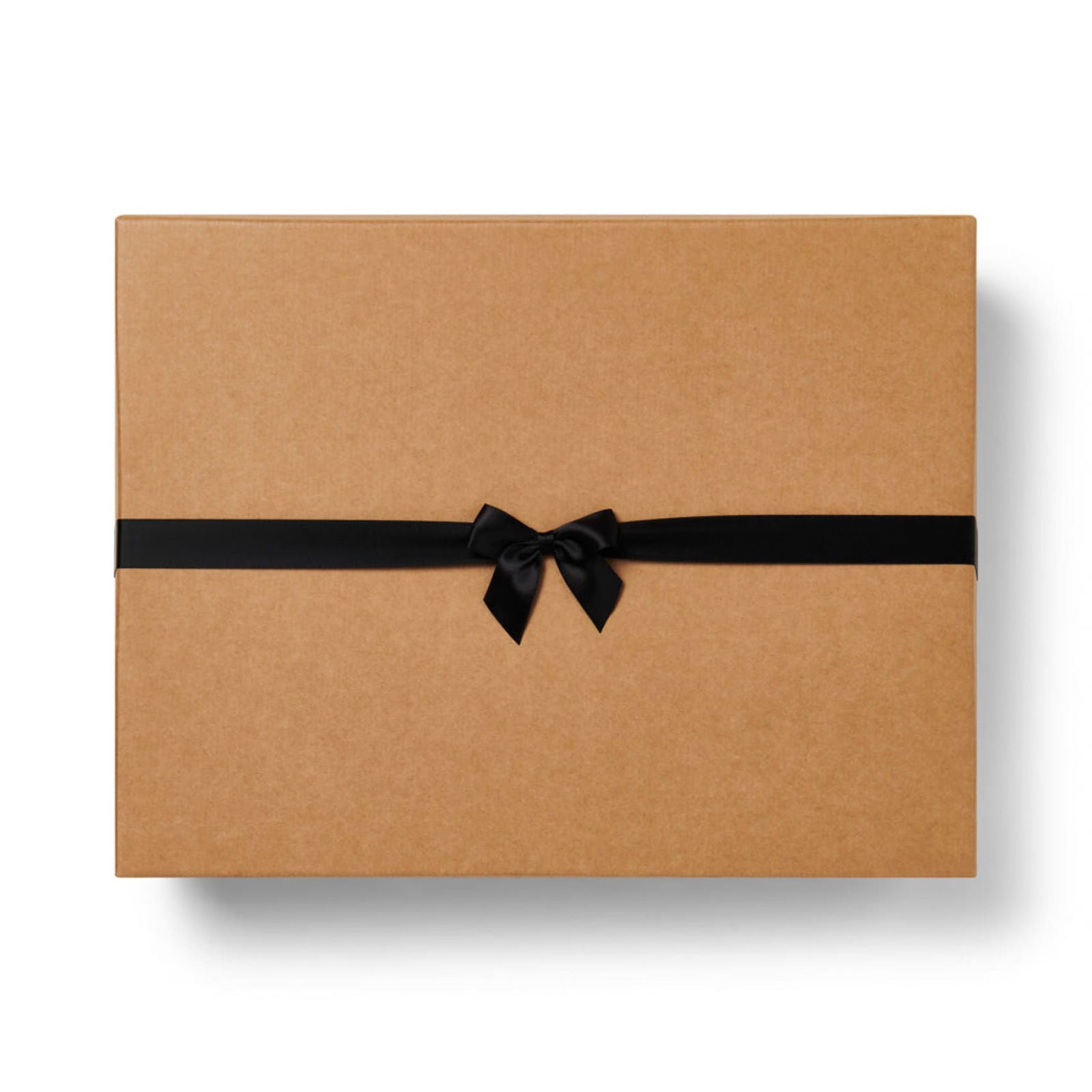 Gift packaged in a Kraft gift box, ribbon and gift tag for you to write your own message.