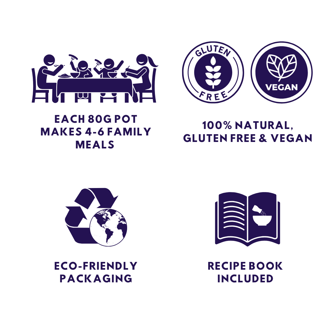 And here’s the best part… this kit gives you the entire Spice Pots experience in one beautifully cost-saving bundle—every blend, every flavour, every mood of curry night—without the extra cost or hassle of buying them individually.  That’s 30+ curry nights—for less than the cost of two takeaways.