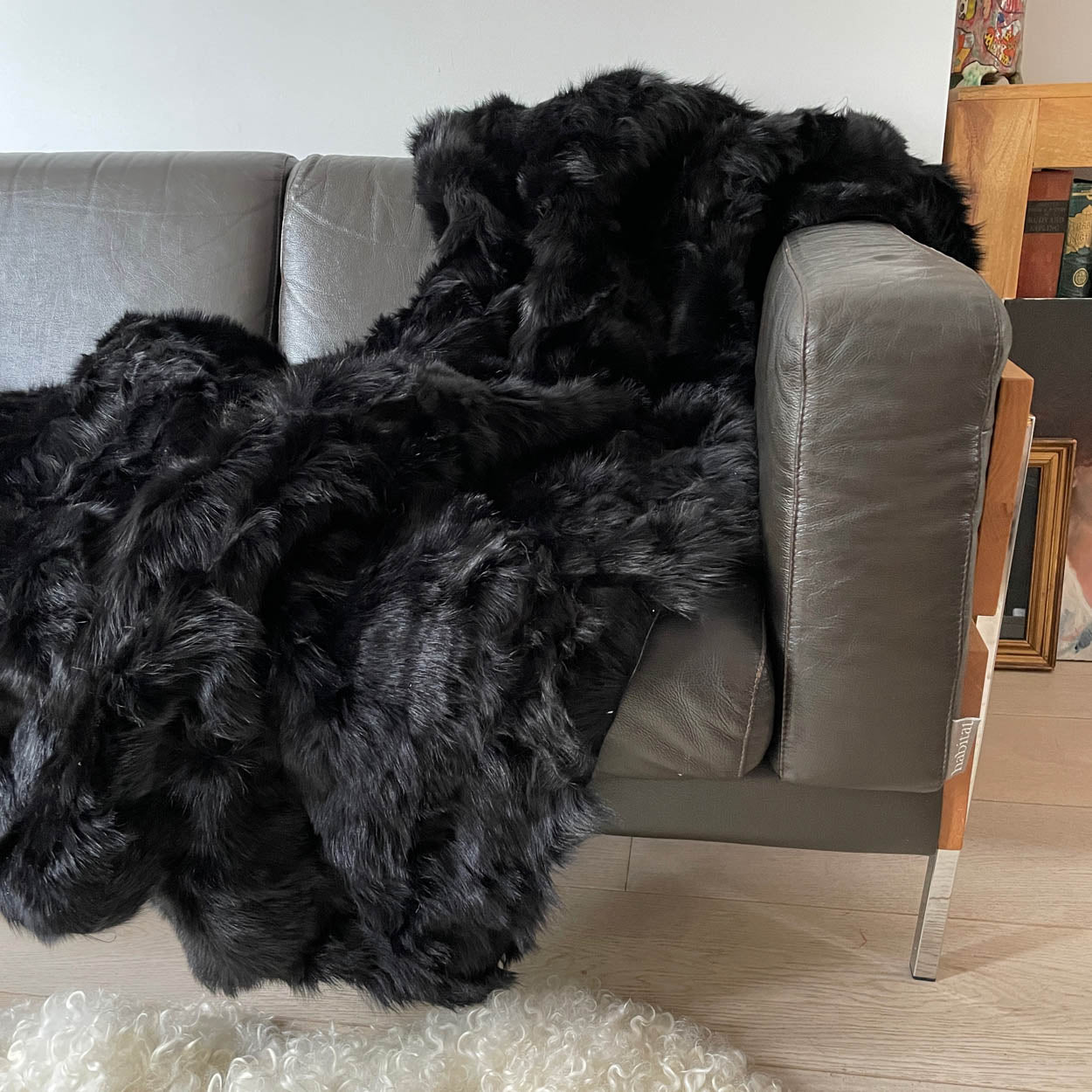 Stunning shearling throw in a dark, rich obsidian black. Expertly coloured with highlights at the tips, giving this piece a stunning depth.