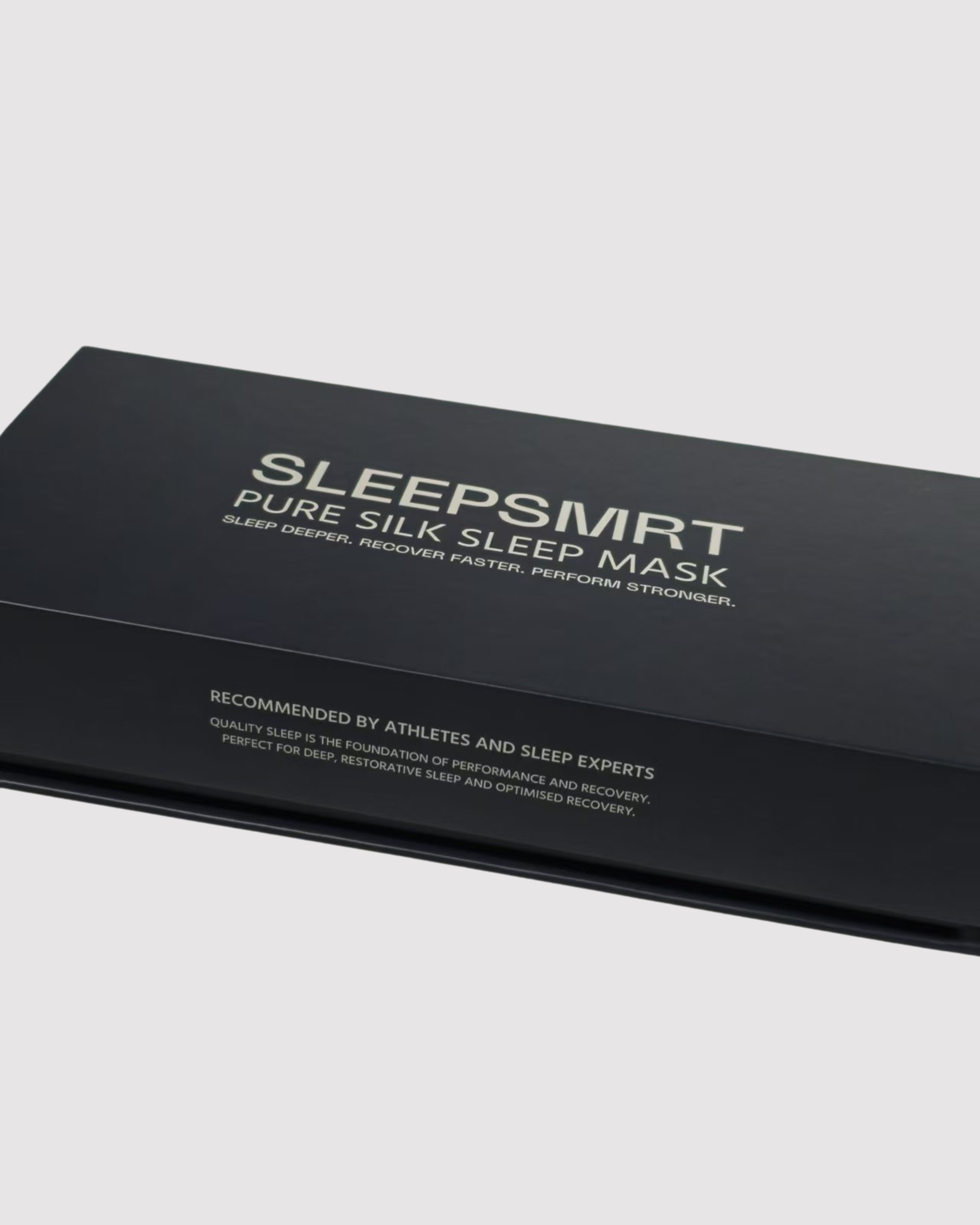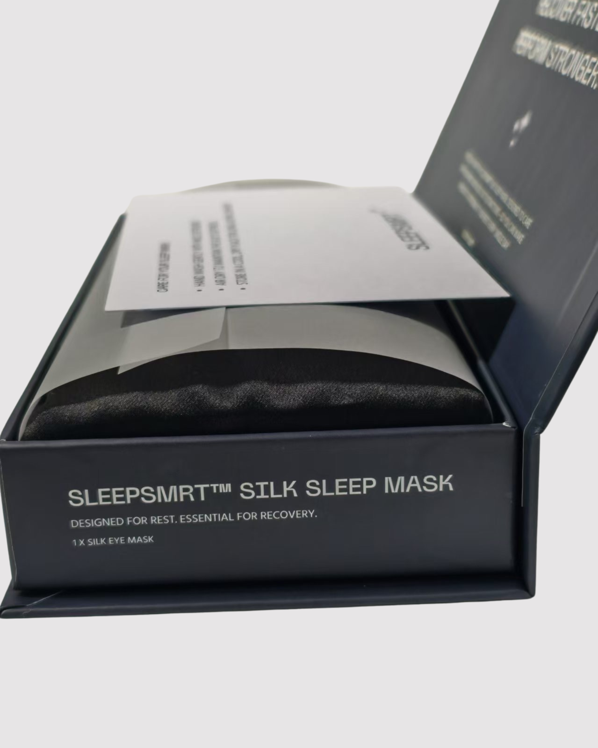 The SleepSmrt Blackout Silk Eye Mask is crafted from ultra-soft, 100% silk, designed to block out all light and help you sink into deep, uninterrupted sleep.