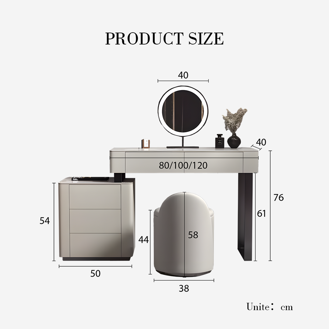 Paulina Modern Dressing Table Mirror With Drawers & LED Light, Solid Wood