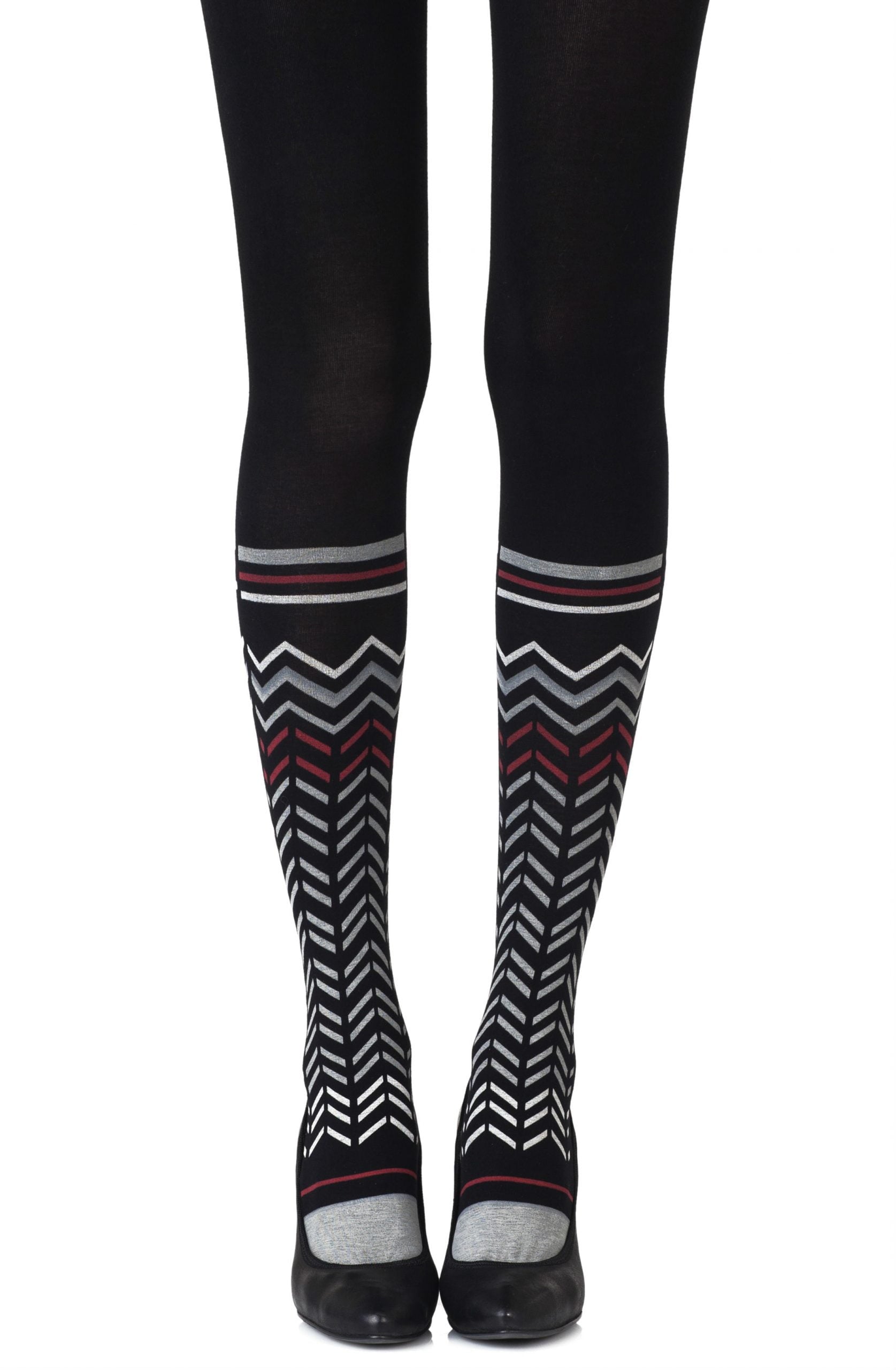 Zohara "Zig Zag Walk" Black Print Tights