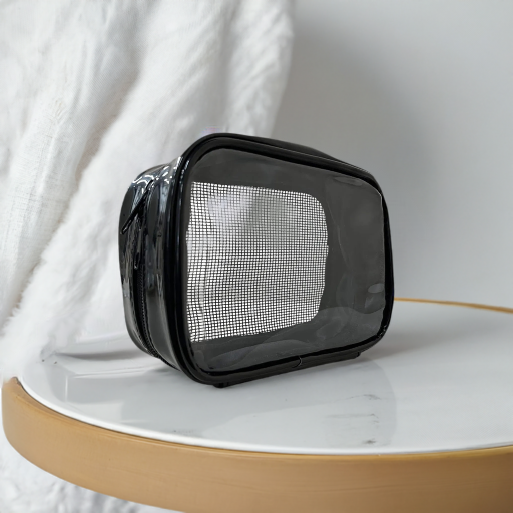 Store your essential everyday products in this glossy, clear makeup bag. Perfect for daily use, traveling, or sleepovers! With clear visibility of your favorite products, you can access your products seamlessly. Plus, with easy-to-clean material, you won’t worry about this makeup bag getting dirty.