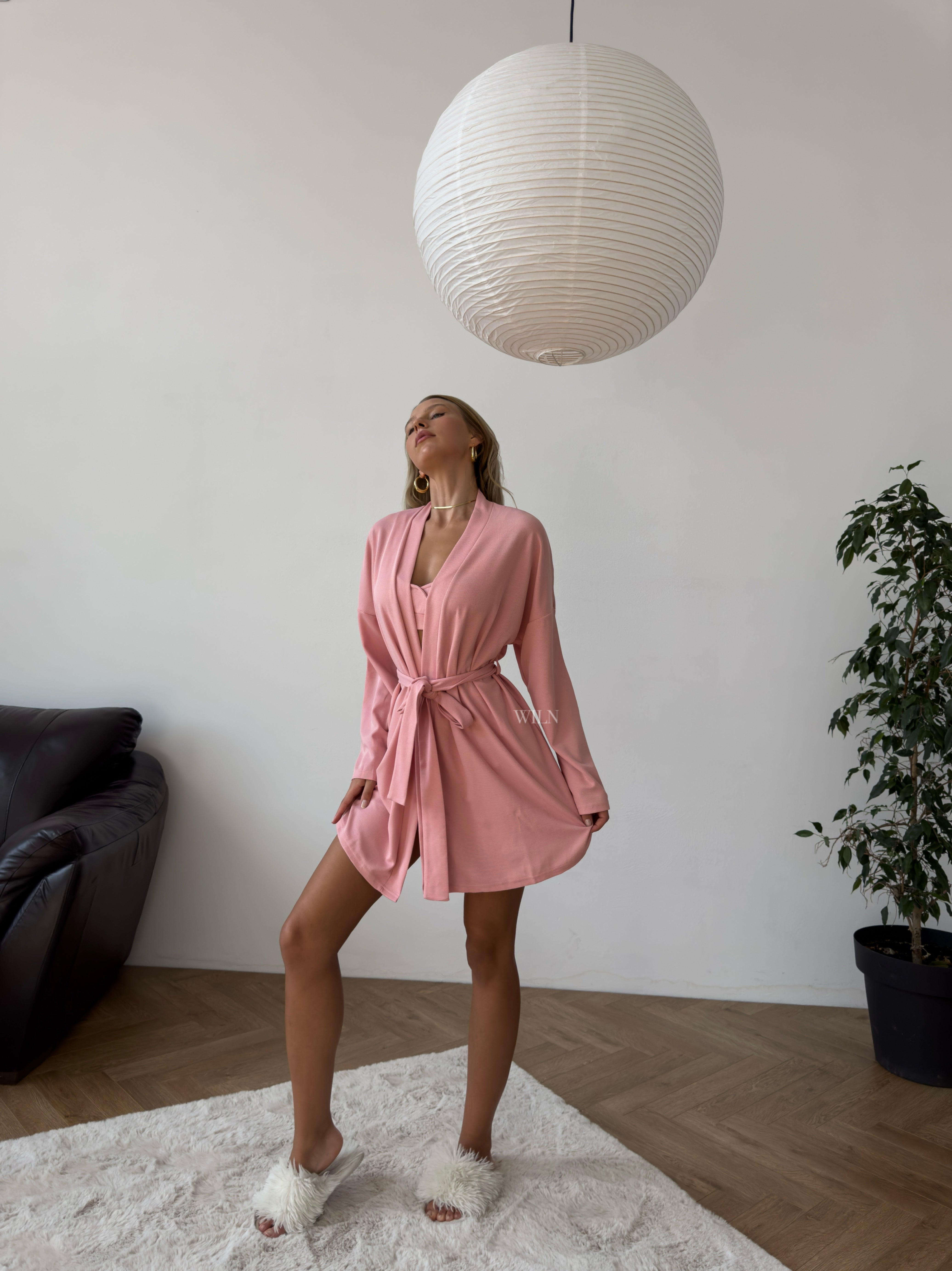 Unwind in effortless comfort and timeless style with the PEACE 3-Piece Loungewear Set Blushed Peony. This luxurious set is crafted for pure indulgence, featuring a playful design and a soft, breathable feel.