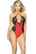 A halter neck black and red teddy with lacey black panels and hook and eye fastener at the back.  Adjustable shoulder strap. This item arrives packaged in a Yesx satin bag.