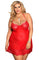 YesX Plus Size Lace Ribbon Bow Babydoll and Thong Set Red