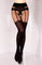 Black Secret Crotchless Tights in Black with Bordeaux Red Pin Striping & Faux Suspender Belt