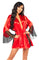 Beauty Night Sara Satin Black Lace Mesh Flared Sleeve Peignoir Red