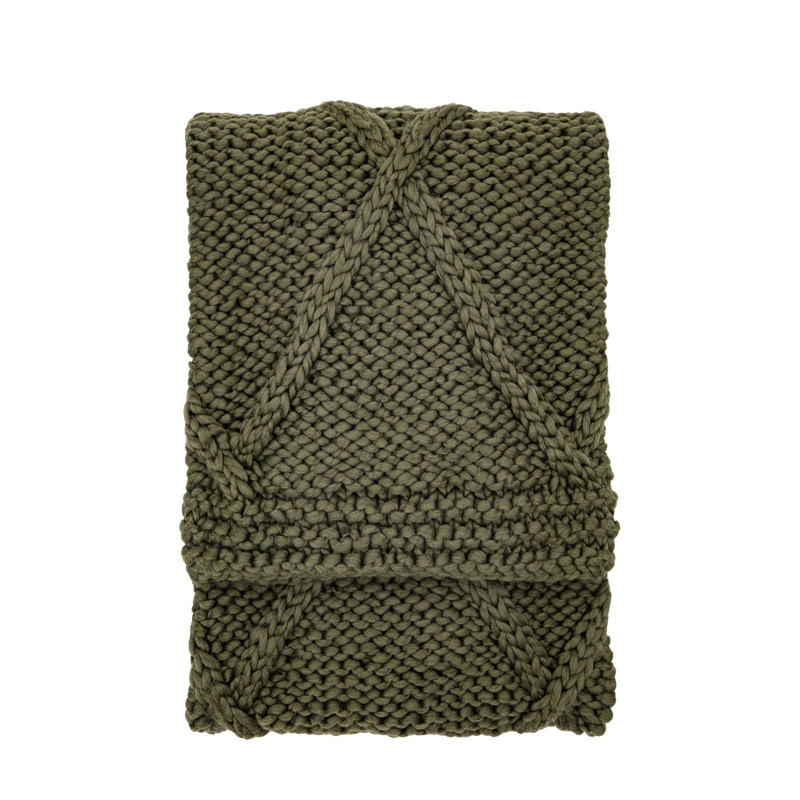 Cable Knit Diamond Throw In Dark Olive
