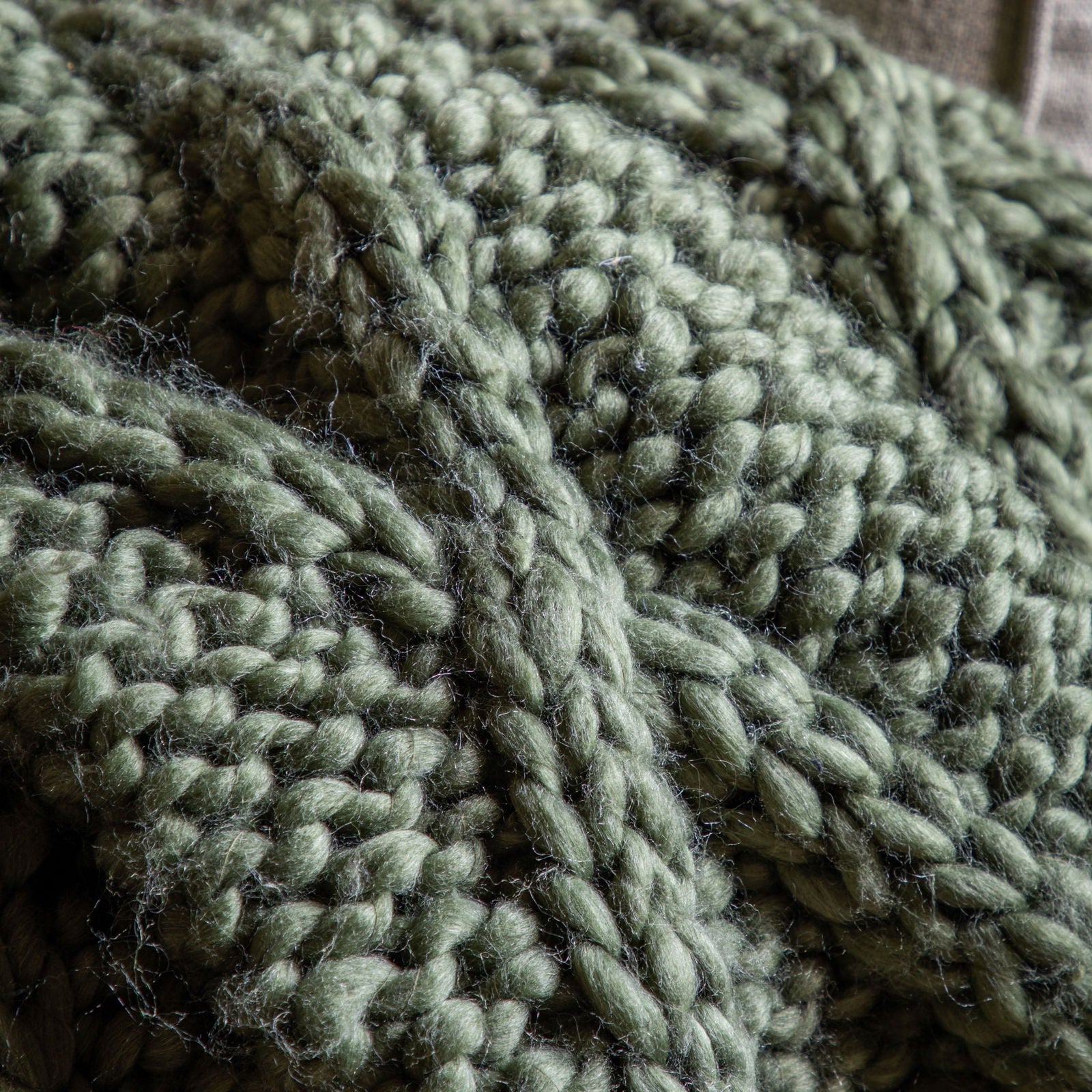 This super-soft, chunky cable knitted throw in dark olive green will add a luxe cosiness,  to any room .