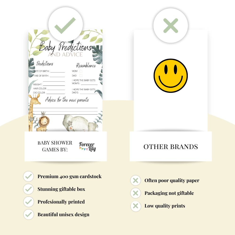 Get ready to celebrate the arrival of your little one with our adorable Jungle-Themed Baby Shower Game Bundle! This charming collection of six fun and interactive games is perfect for bringing friends and family together to shower the parents-to-be with love and laughter.