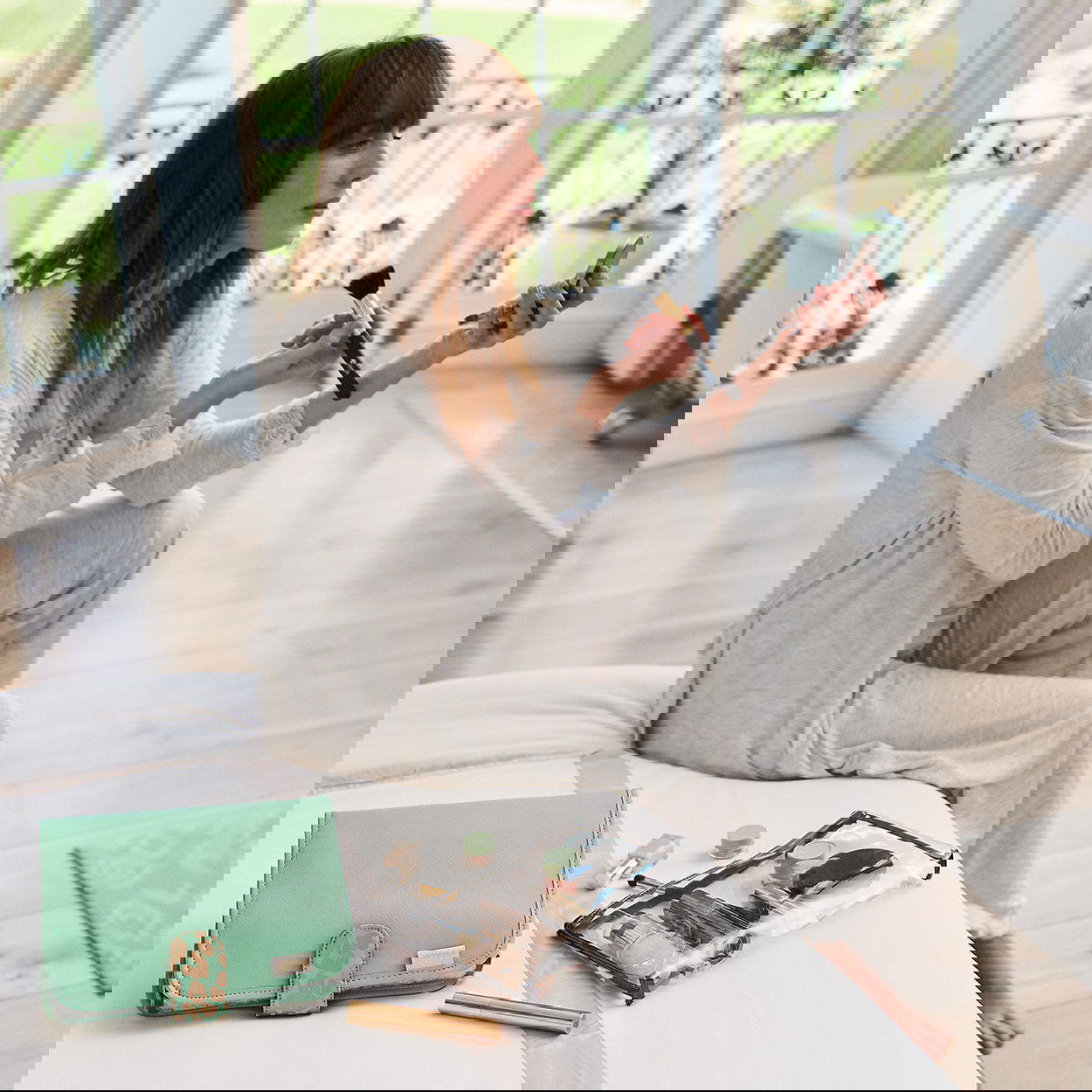 Presented in a bold jade green, the clutch is decorated with a luxe gold leopard print pattern and a rich aubergine-colour lining. Perfect for the jet-set beauty lover.