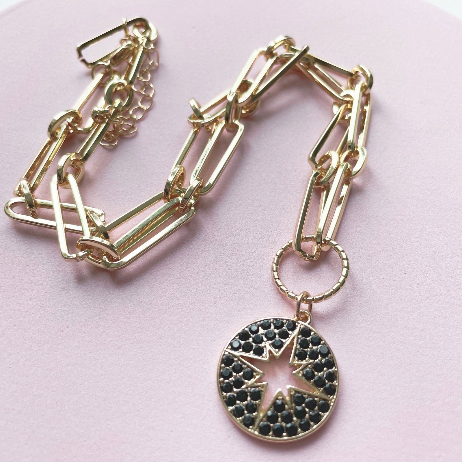 The Nova necklace has a wide chain link with a resin encrusted cut out star burst pendant, it’s definitely a bold statement and can be worn alone or perfect for that stylish layered look.