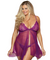 Shirley of Hollywood Berry Purple Stretch Lace Babydoll and Open G-String One Size