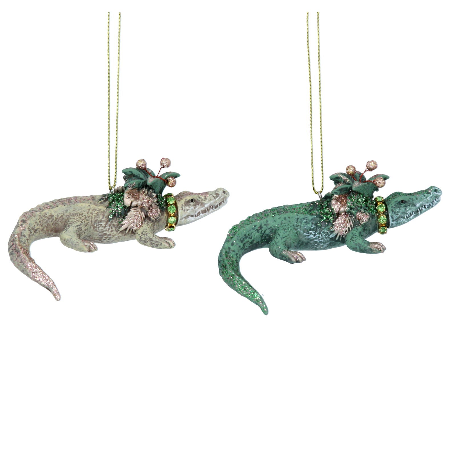 Update your Christmas decor with these tropical-themed crocodile Christmas tree decorations.